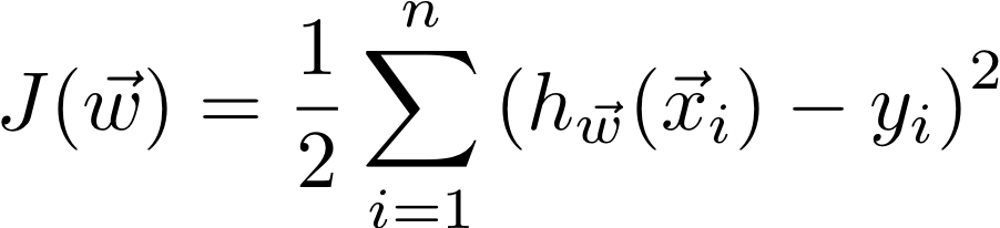 Where our linear model is a dot product of the weights and the features of an example (with a “fake” 1 added to the front of each x):